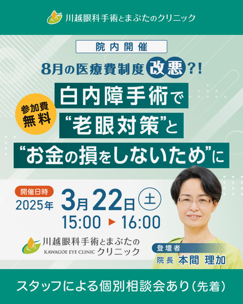 2025年3月22日に院長である本間医師が白内障手術説明会を開催いたします。
